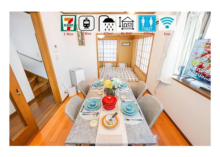 该住宿场所位于葛饰区,距离Takasagokita Park不远。 别墅距离國府台城2.8公里。 附近有咖啡厅Cafe Plataku,走路只需250米。